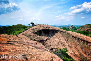 这片侏罗、白垩纪露出地层中的丹霞地貌以艳丽鲜红的丹崖赤壁,
