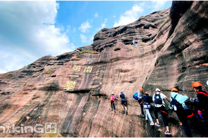 马头山摩崖铁道式攀爬建造在雄、险、奇、秀的丹崖赤壁上,