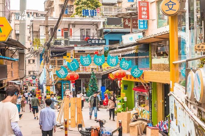 位于思明区顶澳仔路的猫街,是一条以猫咪为主题的小巷。巷内以各类小吃饮品居多,搭配特色的“猫咪博物馆”,是许多爱猫人士的打卡地,整条街随处都能看到许多关于,猫的涂鸦或是工艺品,每家店门、街边路灯,甚至居民楼的外墙,都有猫咪的元素。