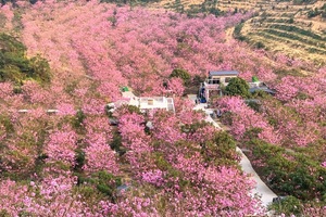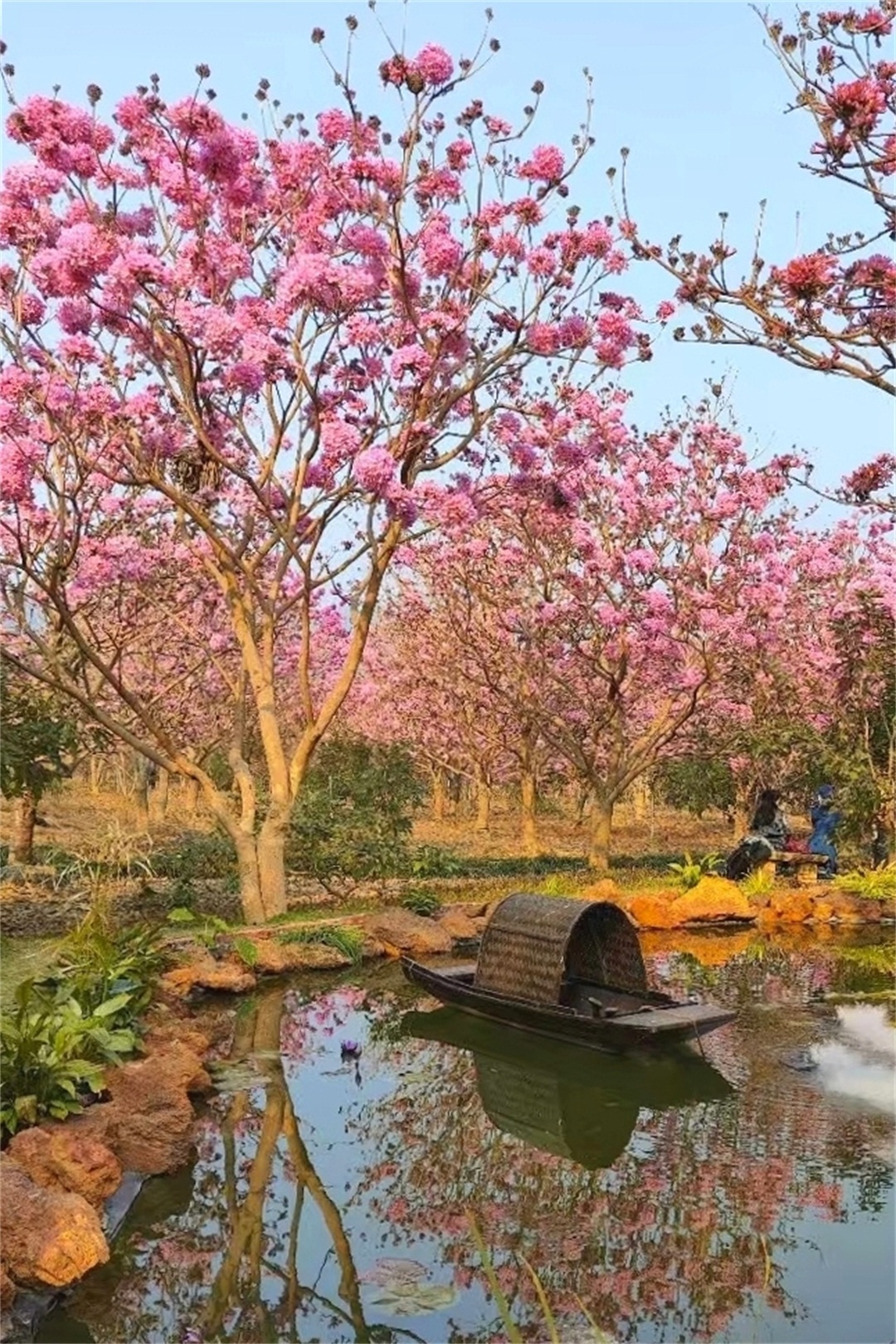 | 占地千余亩的紫花风铃木林场,每逢冬季,这里的风铃花争相怒放,浪漫花海开满山头,形成一片姹紫嫣红的海洋 | |||