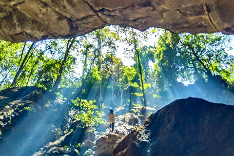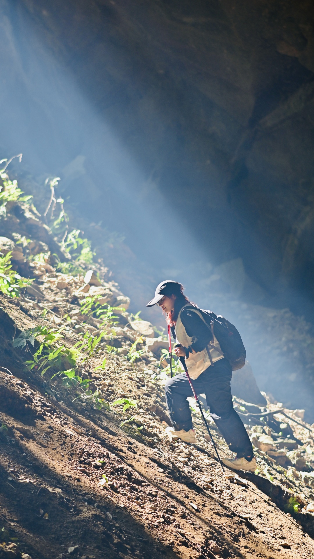 全程一共13洞,值得看的洞8天窗岩,拍合照的地方,大石头很出片,洞顶有一个方形凹陷;洞9黑岩,不起眼的小入口,一开始得蹲着进入,慢慢通道开朗,山洞很大岔路多容易迷路,路面湿滑,有很清但很深的水潭,注意安全;洞12波斯岩,也就是他们说的“耶稣之光”打卡点,阳光从洞口射入拍到丁达尔现象很美,今天的光线不够手动加光,注意此位置易有落石;