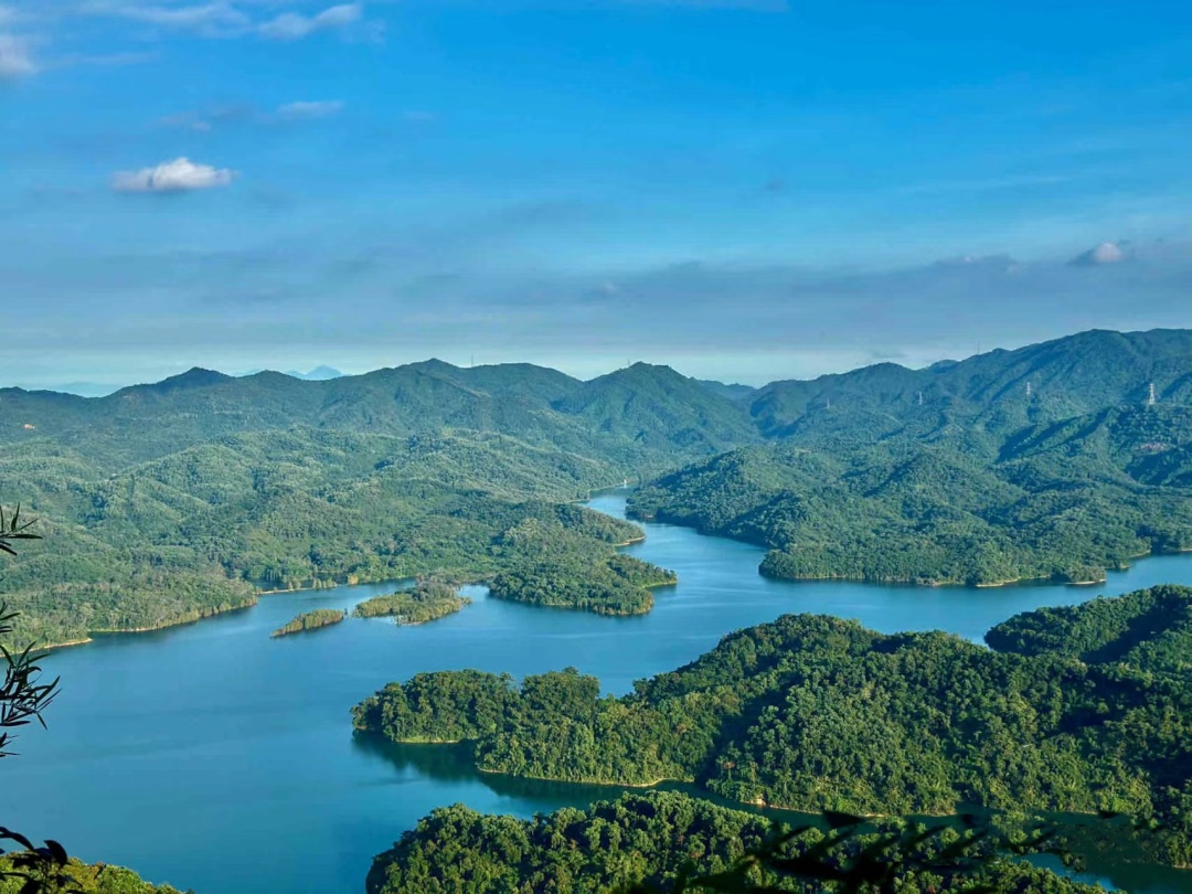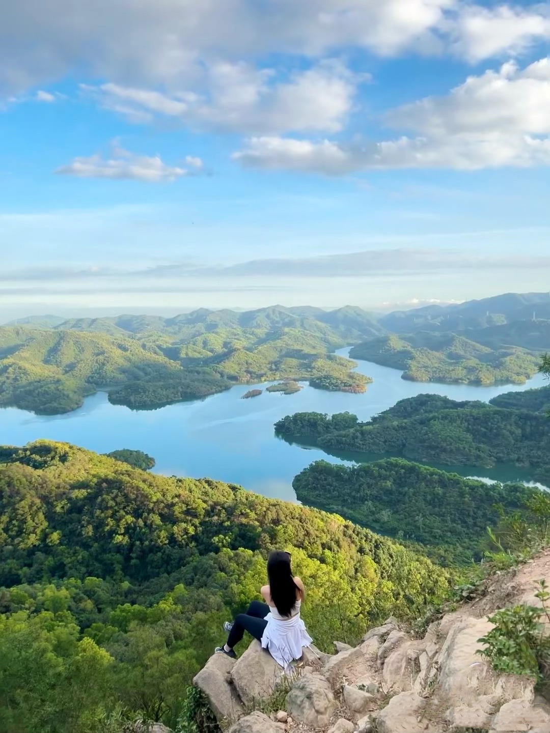 狮头山山顶视野开阔,近看碧水婆娑、远眺连绵青山,真不愧为中山新晋的网红打卡地。