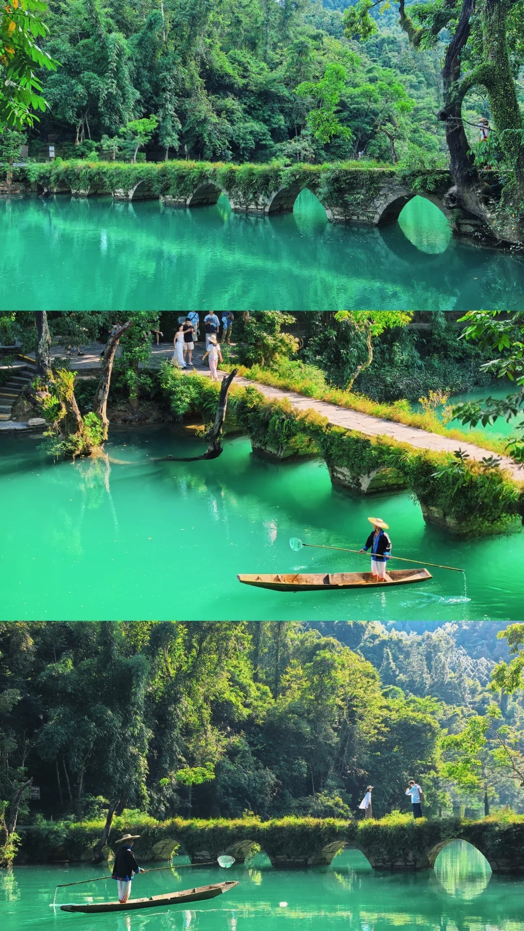地球腰带上的“绿宝石”!翡翠般的潭水漫过清代七孔古桥,坠入层层森林秘境。沿68级瀑布踏水而行,鸳鸯湖划透明船穿梭水上森林,仿佛闯进阿凡达的幻境。