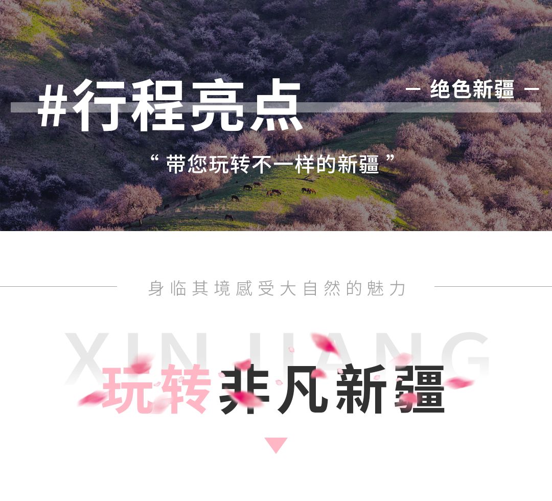 | 今日早上8:00用完早餐后,驱车60KM,抵达花海—吐尔根。 吐尔根乡的杏花沟,这是一片中世纪遗留下来最大的原始杏花林,或集中、或散落于巩乃斯河北岸,距218国道3公里处,占地有3万多亩,是我国野杏林集中地之一。 到山梁放眼望去,杏树满山遍坡,千株万棵,枝根相接,人入其中,隔数尺而只闻其声不见其影。 今日我们根据开花的情况和团友们的意愿,或等待日落或适时返回伊宁市区入住。 4月的伊宁市区也是花海的世界,道路两旁盛开着或粉或白的花朵,入住酒店后团大家可自行前往拍摄。 有兴趣的小伙伴还可前往喀赞其民俗村,这里是一个蓝白小镇,身处这里会让你有一种身处国外的错觉。 温馨提示: 新疆的杏花,通常在4 月中上旬盛开,杏花花期较短,受气温以及天气变化影响较大,每年花期不固定,无法确保最佳花期。不同地方花开时间不同,敬请谅解!也可能因为天气原因会涉及行程的微调,届时请配合导游工作。 |