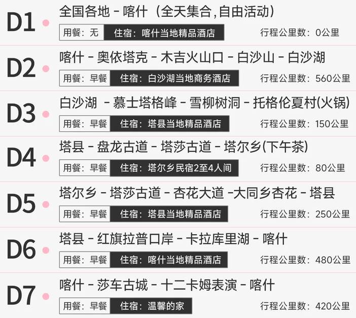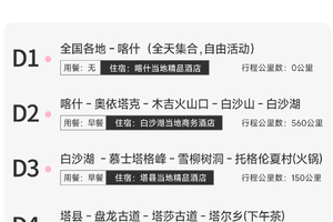 | 住宿 | ● | 喀什当地精品型酒店 |