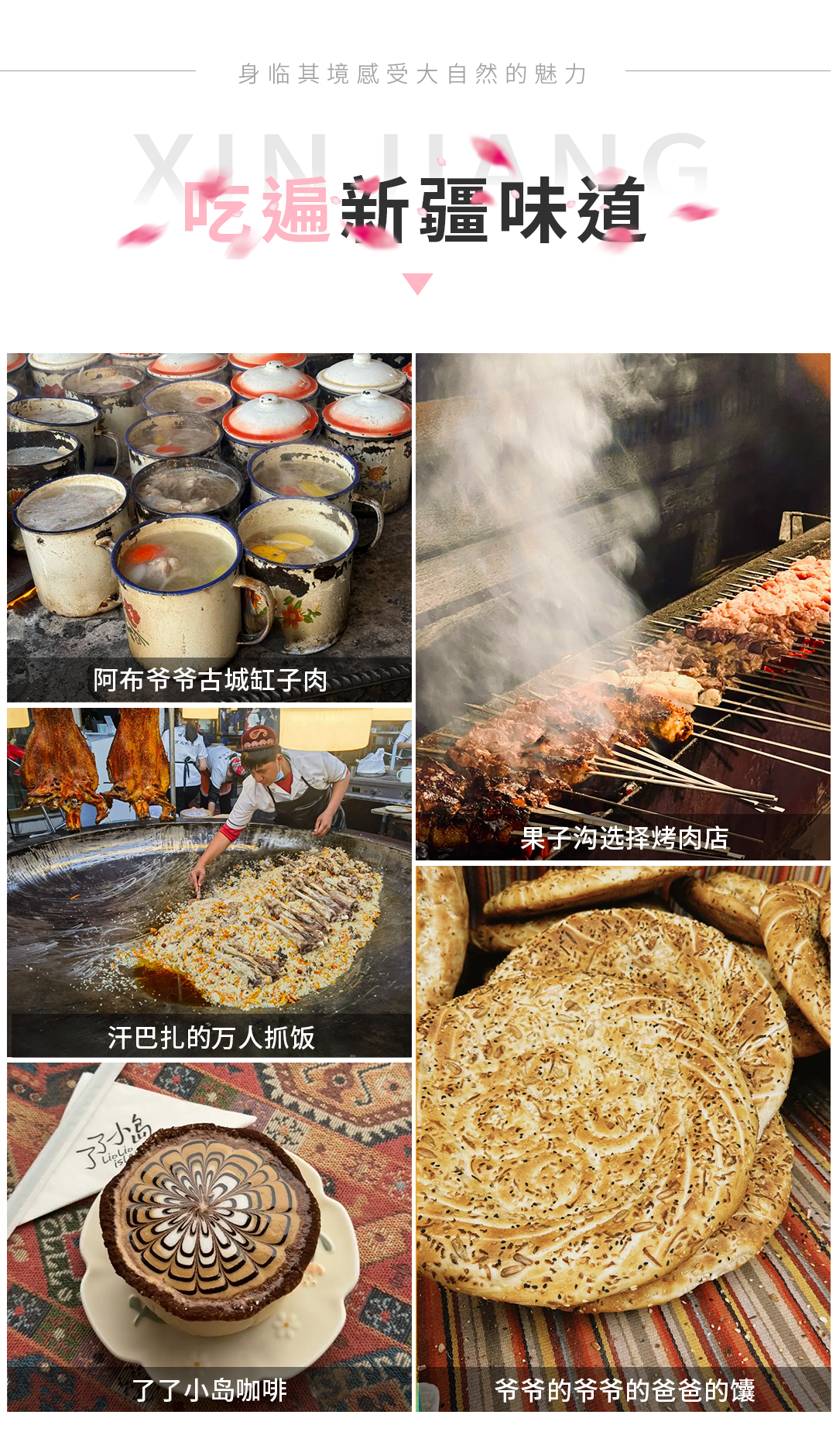 全程不含正餐,可以AA用餐,也可以队员个人用餐,丰俭由已。 新疆的口味普遍偏酸、辣、甜,多数菜肴中都有洋葱、辣椒和西红柿,用餐过程中中如有忌口或特殊要求者,请提前告知领队,面条吃完可以免费加面,但添菜需另付菜金。 |