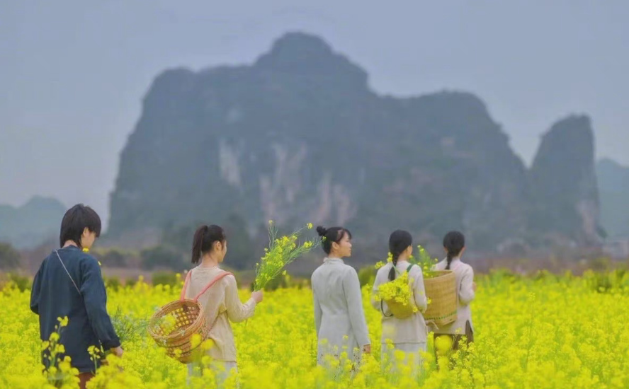 在每年的2-3月,阳朔的千亩油菜花如约而至,
