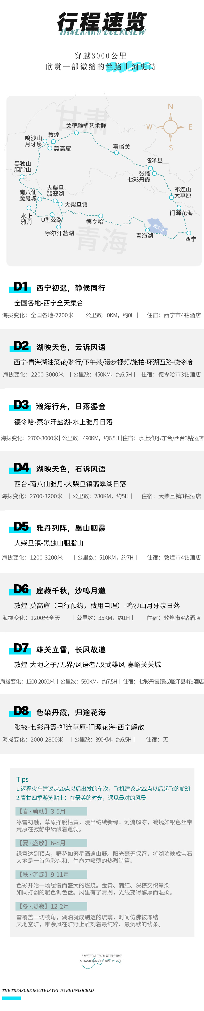 3、城市间路途较远,景点较分散,故乘车时间较长,请您作好吃苦准备,备好晕车药,旅游车大部分为全封闭车。