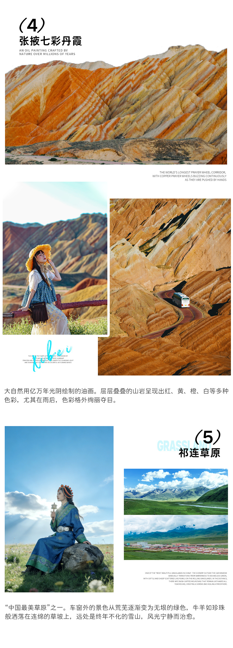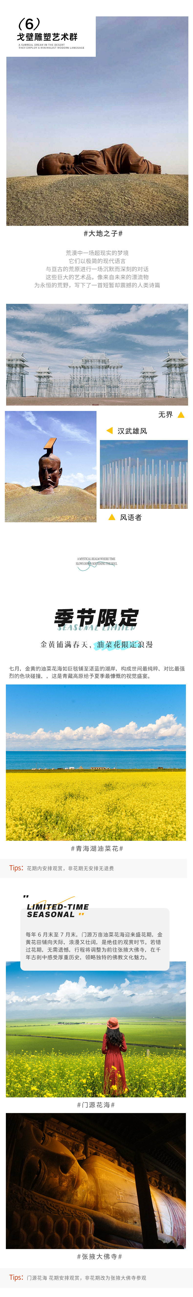 【油菜花】(花期在6月末-8月中旬);高山牧场的野花五彩缤纷,如绸似锦,数不尽的牛羊膘肥体壮,点缀其间,我们随后三五成群进行【青海湖骑行体验】,骑着自行车感受着青海湖的美景,真希望时间在这一刻停留。