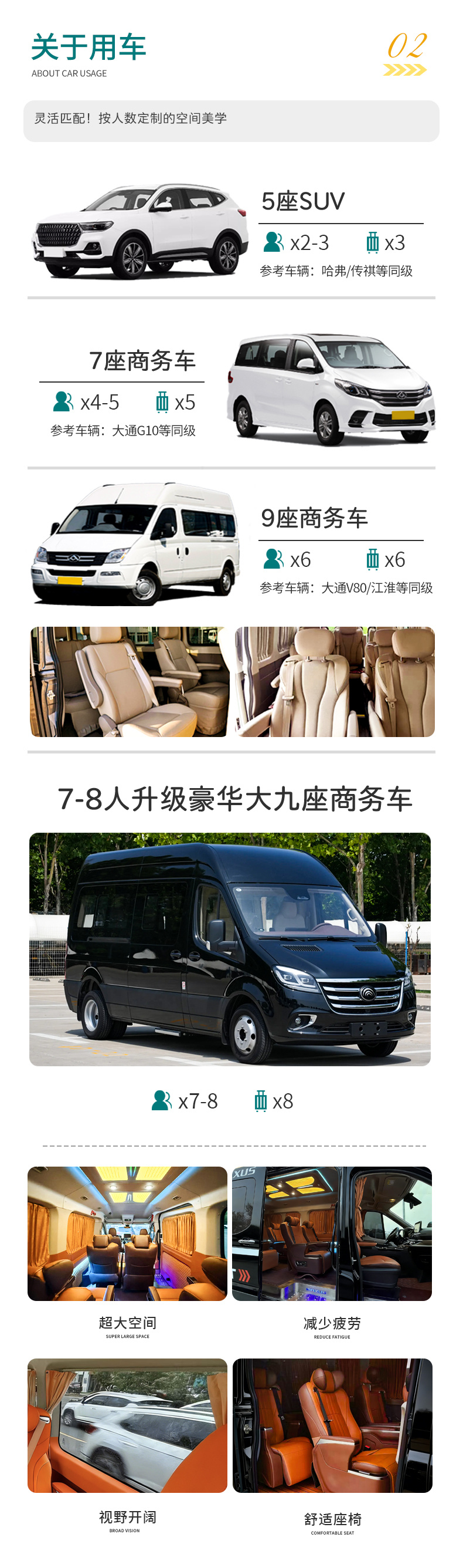 (1)大背包:每人限带一个大背包(70L以下)或者旅行箱(24寸以下,5~9座车不超过24寸);