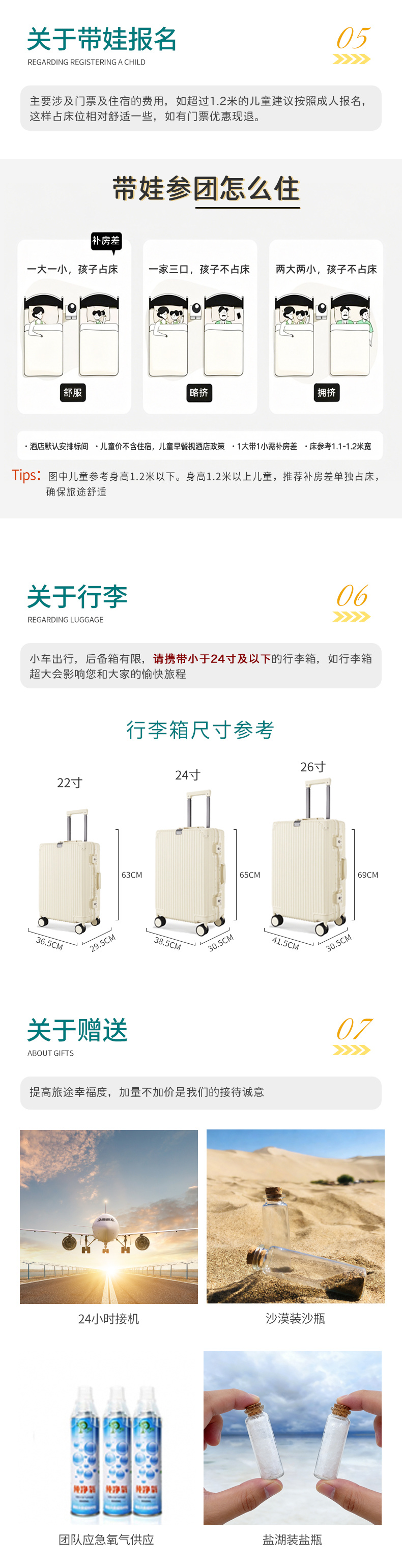 · 1.2米及以下为儿童,不占床位(与成人共用1张床铺)、免门票、免早餐、含车位、含司机服务、含保险、含赠送项目;