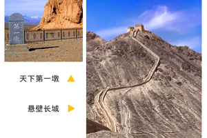 | 开启新一天的旅程!,我们先前往【天下第一墩】、天下第一墩,又称长城第一墩或讨赖河墩,是嘉峪关西长城最南端的一座墩台,也是明代万里长城的最西端,随后前往【悬臂长城】、这里是嘉峪关古代军事防御体系的重要组成部分,也是万里长城的最西端标志。这段长城位于石关峡口北侧的黑山北坡上,全长15公里,现存750米,其中231米城墙悬挂于高150米、倾斜度45度的山脊上,形似人的手臂呈S状搭在山上,因此得名“悬臂长城”。 | ||