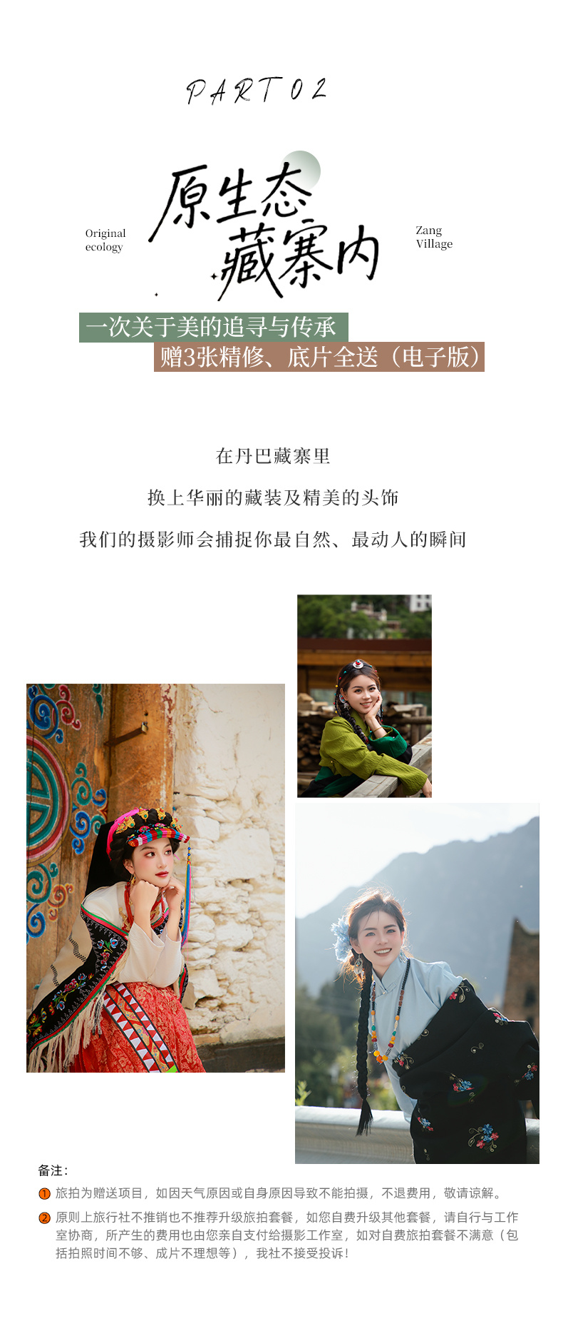 3、驻地藏式旅拍1次(免费提供藏装、头饰,赠3张电子版简修,底片全送);