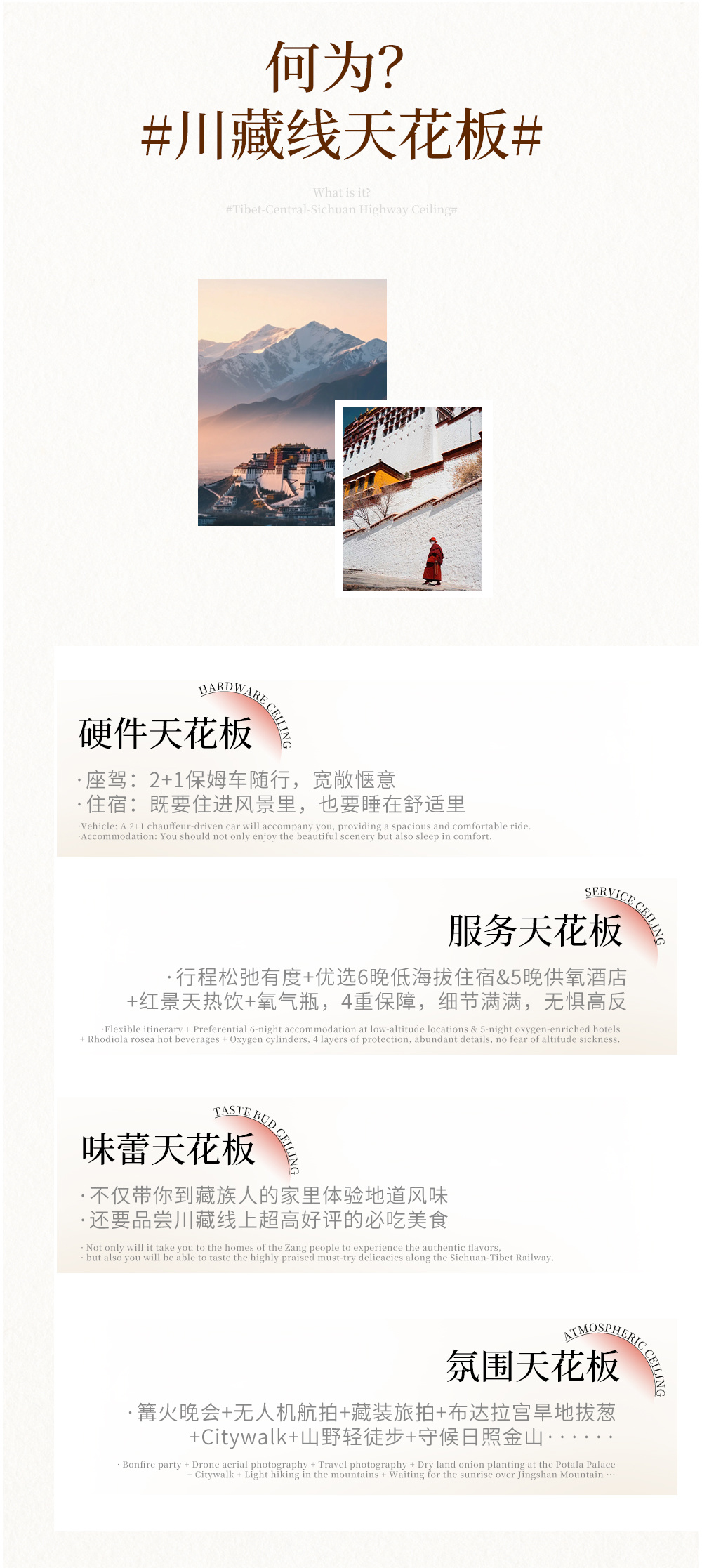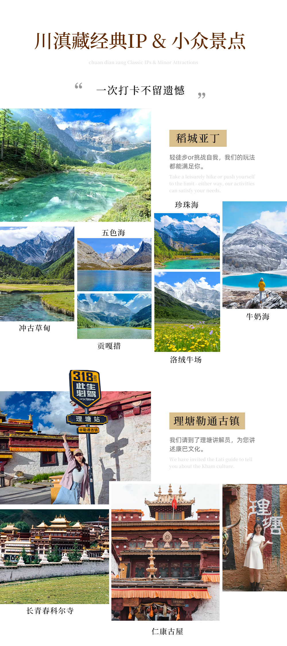 3、沿途特色活动:康定Citywalk、稻城亚丁轻徒步、守候日照金山、篝火晚会、布达拉宫·旱地拔葱&藏风咖啡、八廓街漫游;