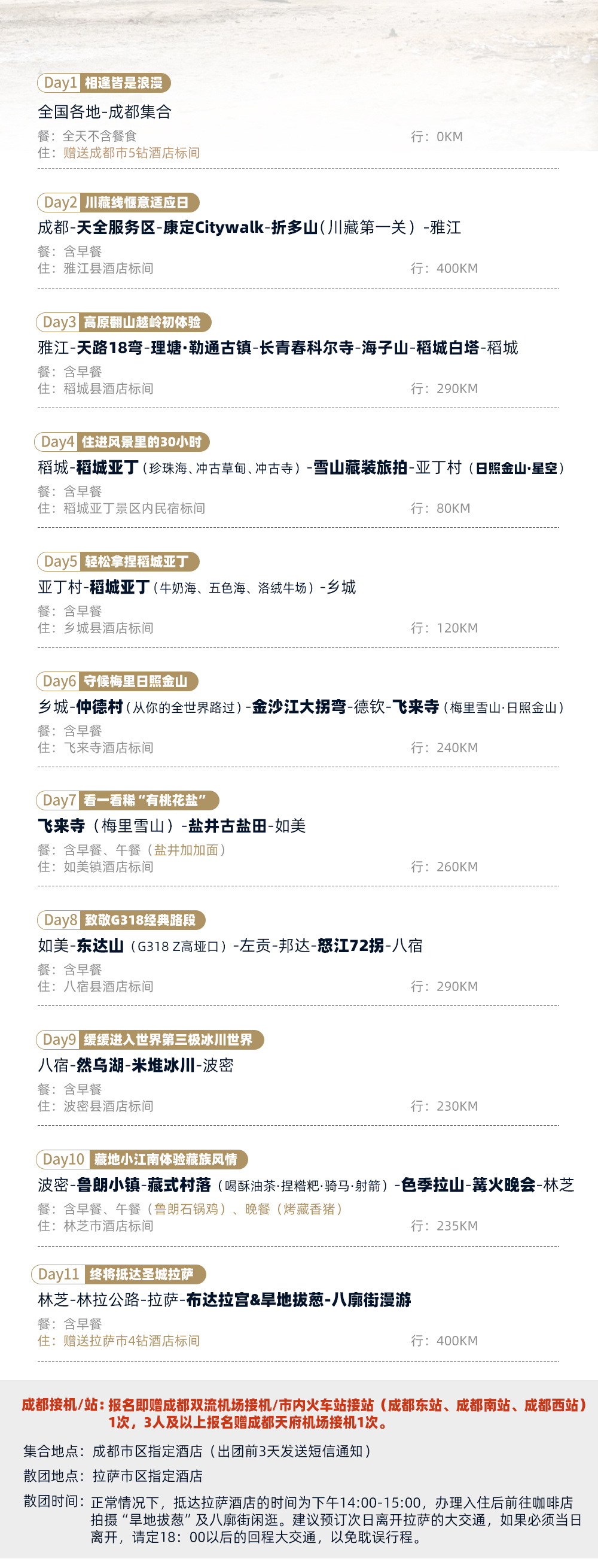 注:如团队人数未达到9人,康定citywalk及八廓街漫游则改为自由行,我社会提供漫游攻略以供参考。