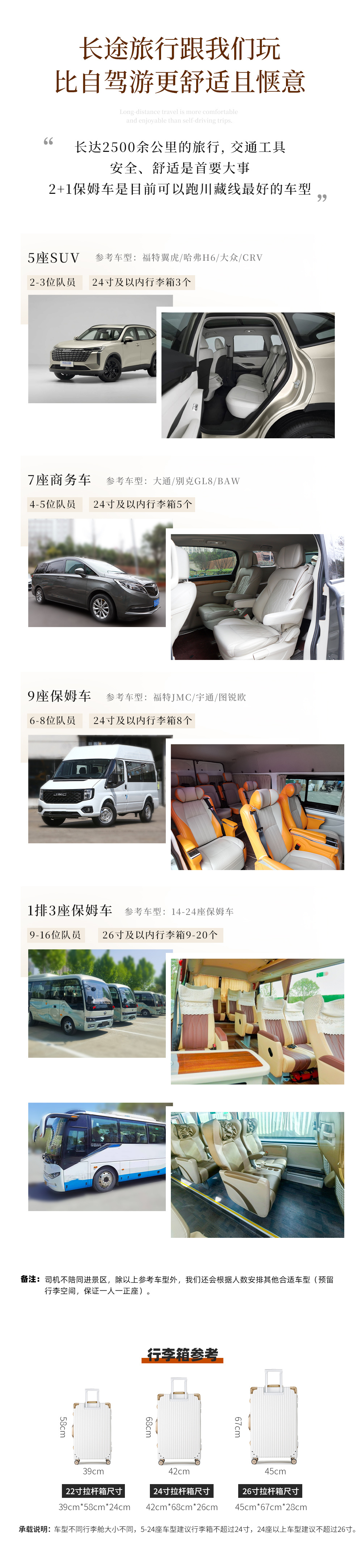 (3)座位:左手第一个座位为驾驶员,右手第一个座位为导游,其他为普通座位,上车后请自行选择座位,高原长途旅行,队员之间请互相谅解;