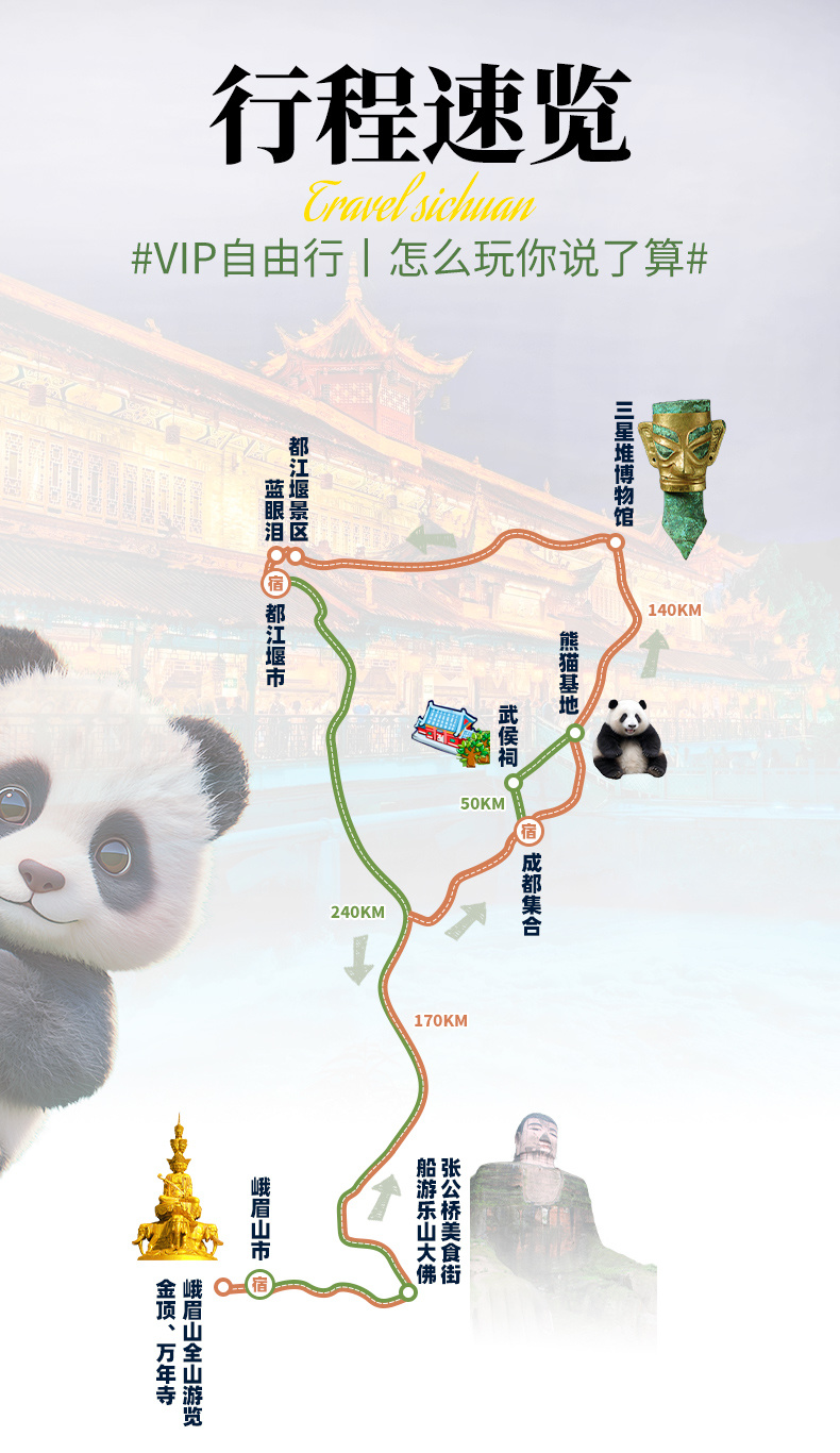 2-8人VIP自由行 · 峨眉山+乐山大佛+三星堆+都江堰+熊猫基地+武侯祠5日游