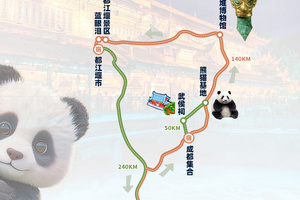 4、景交: 峨眉山观光车90元/人(必须)、金顶索道(上行)65元/人(可选、建议乘坐)、金顶索道(下行)55元/人(可选、建议乘坐)、万年索道(上行)65元/人(可选、建议乘坐)、万年索道(下行)45元/人(可选、建议乘坐),都江堰观光车单程10元/人(可选)、玉垒阁大扶梯往返40元/人(可选),熊猫基地观光车30元/人(可选);