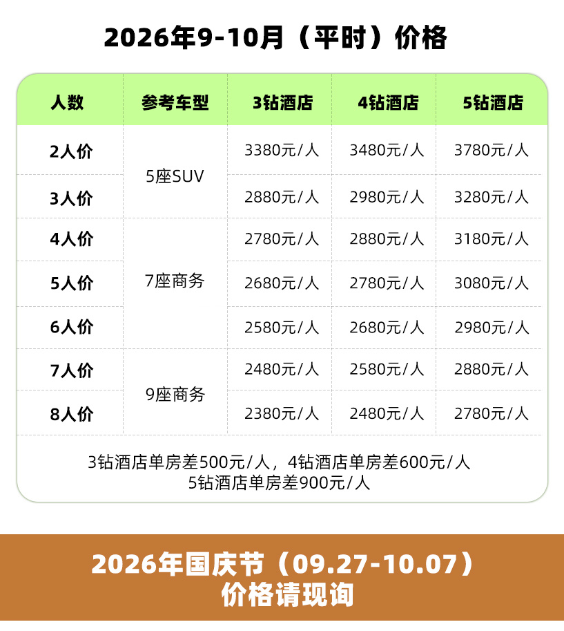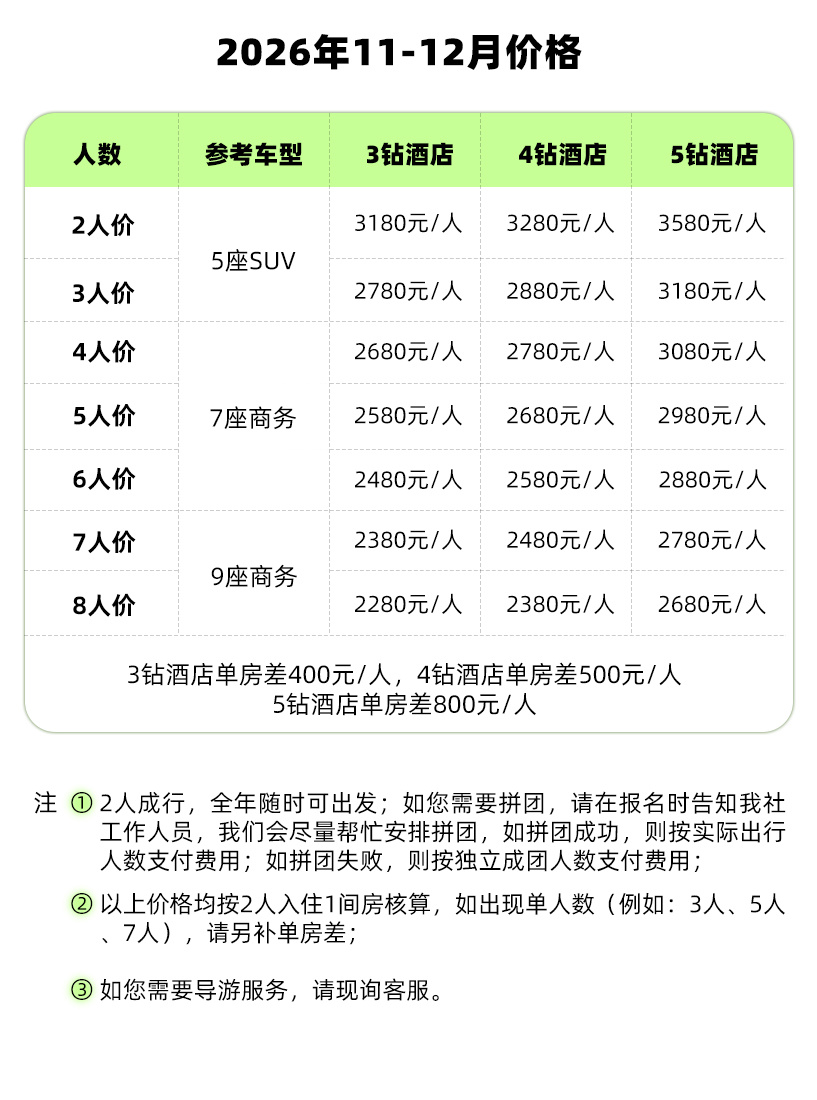 全年随时可出发,独立成团,不限团期
