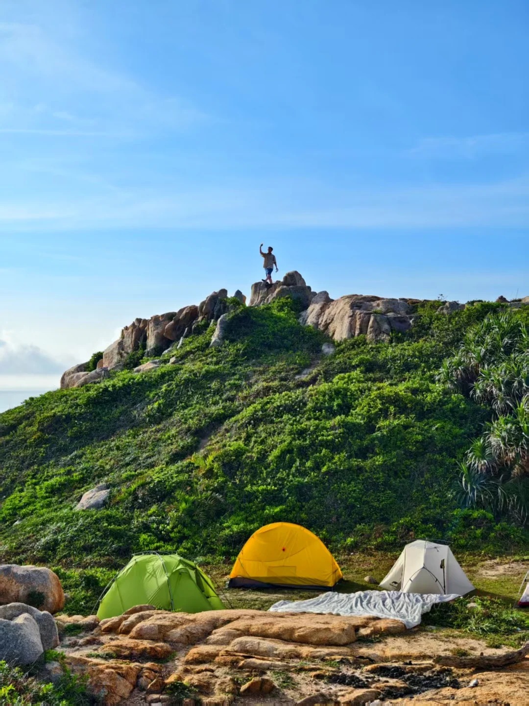 这里东望大海,海天辽阔、天水一色。岛的一面是渔村,另一面是地势平坦的荒野,非常适合露营。