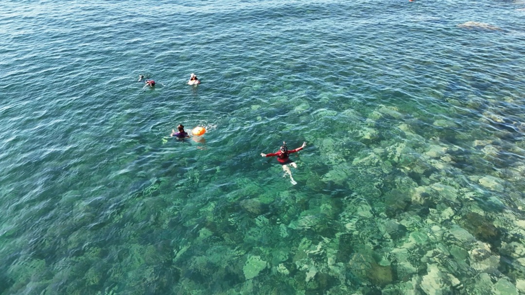 这里海水清澈透明,能见度5-8米,阳光明媚的日子,浸在清凉的海水里,看着色彩斑斓的小鱼在身边游弋。所有的烦恼和劳累顿时消失,剩下的只有宁静、舒适和人与自然合二为一的惬意。